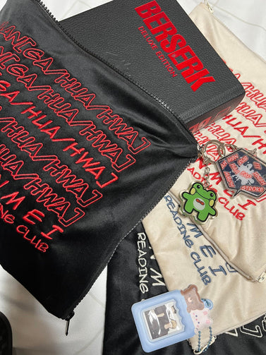 ā¢Sleeves are composed of 3 different fabric layers. Outer material isĀ a velvet, soft-to-touch fabric. Middle layer is a water repellant polyester, gotta keep them books safe from our tears that may fall or whatever is wet y'knowš? Innermost layer is a satin that'll prevent rubbing and wear and tear of the book edges.